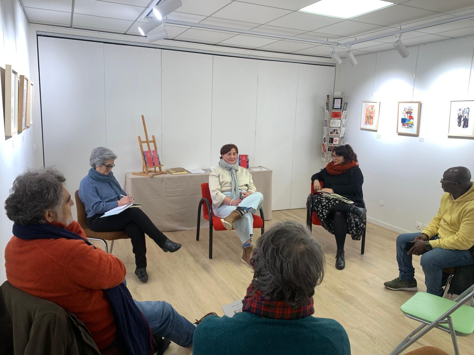 El acto, organizado por PCE Francia, Mouvement de la Paix, Galerie Art et Paix y Café Olé, tuvo como ponentes a la propia artista, Águeda Rubio, pintora y poeta, a Isabel Vázquez de Castro, dramaturga, y a Natalia Ruiz-Poveda, escritora e historiadora del arte.